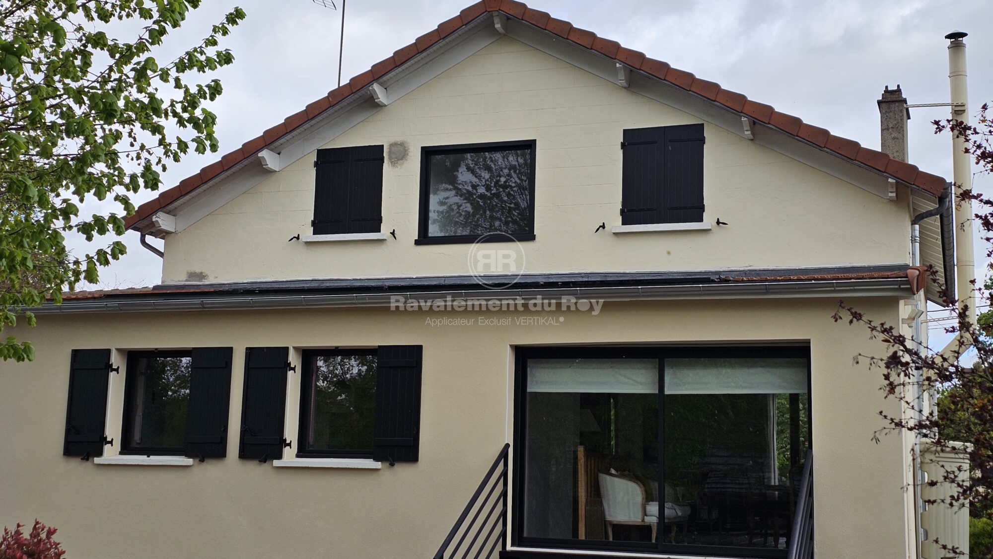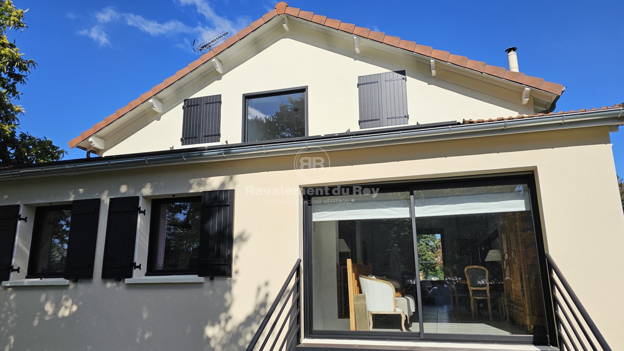Les anciennes couches de peinture ont été éliminées à l’aide du VERTIKAL DECAP +, permettant de retrouver des supports sains avant rénovation. Les façades principales ont ensuite été protégées avec le VERTIKAL RSE 50 en teinte Pierre, un revêtement semi-épais offrant imperméabilité, souplesse et homogénéité visuelle. Cette teinte minérale apporte sobriété et modernité à l’ensemble.