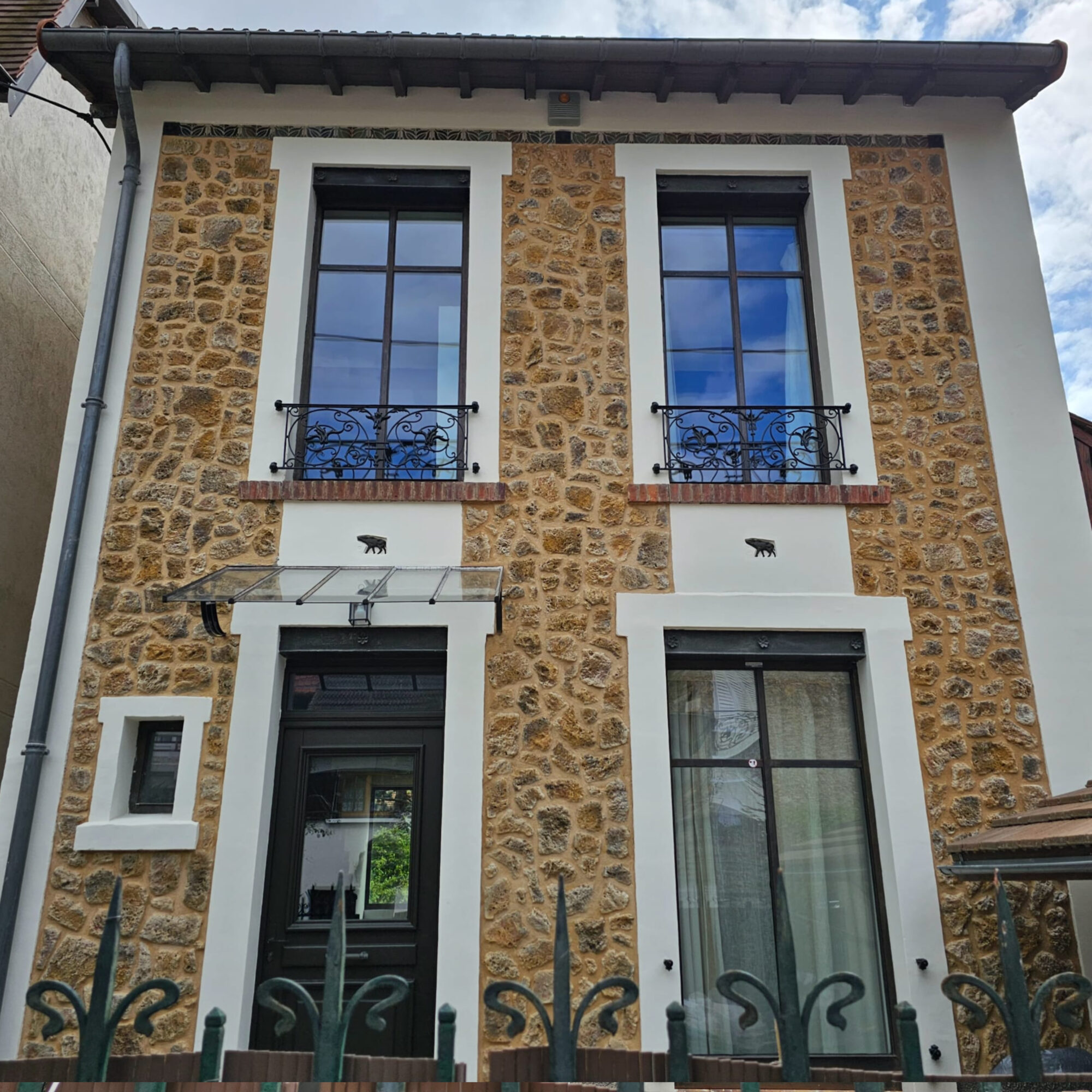 Située dans le quartier résidentiel du Jardin Parisien à Clamart, cette maison présentait une façade en crépi brut jugée trop neutre et sans véritable identité architecturale. Les propriétaires souhaitaient transformer radicalement l’aspect extérieur de leur habitation afin de lui apporter plus de cachet et une esthétique plus noble, inspirée des maisons anciennes typiques de Clamart.