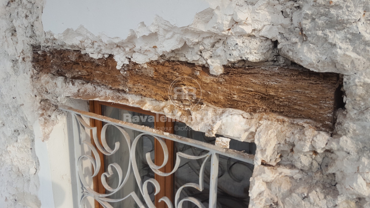 Les linteaux en bois étaient également vermoulus, et nous avons donc dû les changer. Les linteaux en bois sont des éléments de structure horizontale qui soutiennent la maçonnerie au-dessus des ouvertures de fenêtre ou de porte. Si l’humidité s’infiltre dans le bois, cela peut entraîner le développement de champignons et d’insectes qui se nourrissent de la matière organique du bois. Ce processus est appelé la moisissure ou la vermoulure. Lorsque les linteaux de bois sont affectés par la vermoulure, ils peuvent se fragiliser et se détériorer. Cela peut entraîner des fissures dans les murs au-dessus des ouvertures. En cas de détérioration avancée, il peut être nécessaire de remplacer complètement les linteaux de bois pour garantir la stabilité et la sécurité du bâtiment.