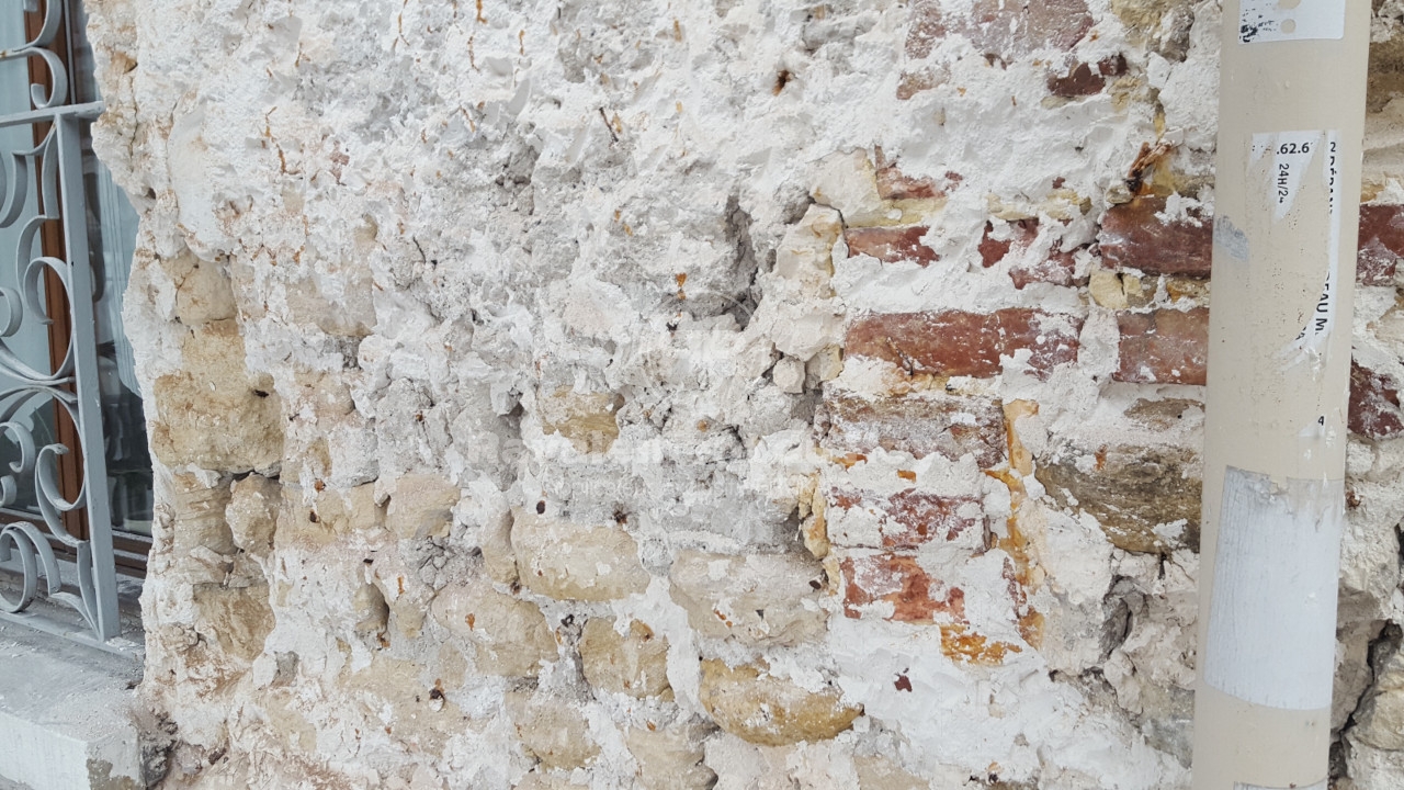 Pour rendre les façades pérennes, il a fallu tout piocher et faire tomber tout le plâtre des façades avant de les refaire avec un Mortier Plâtre et Chaux. Ce travail a été nécessaire pour garantir une base solide et sèche pour le nouveau revêtement. Le piochage à 100 % était obligatoire car tout était mouillé.