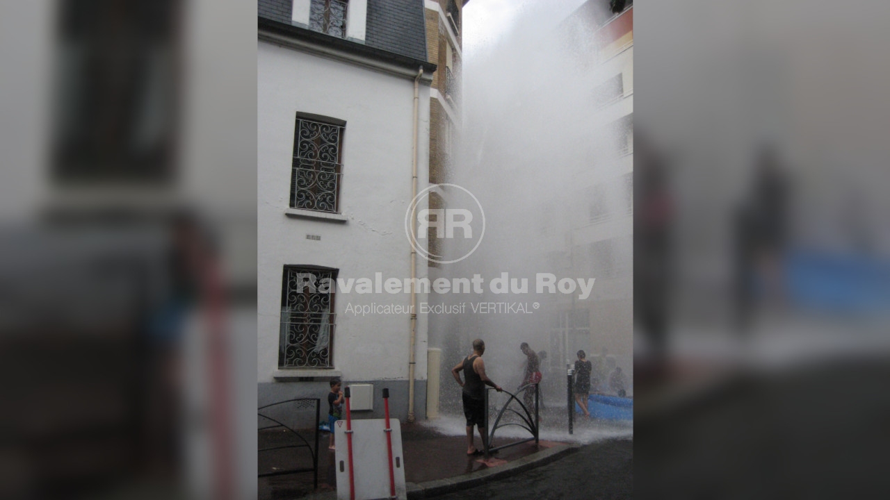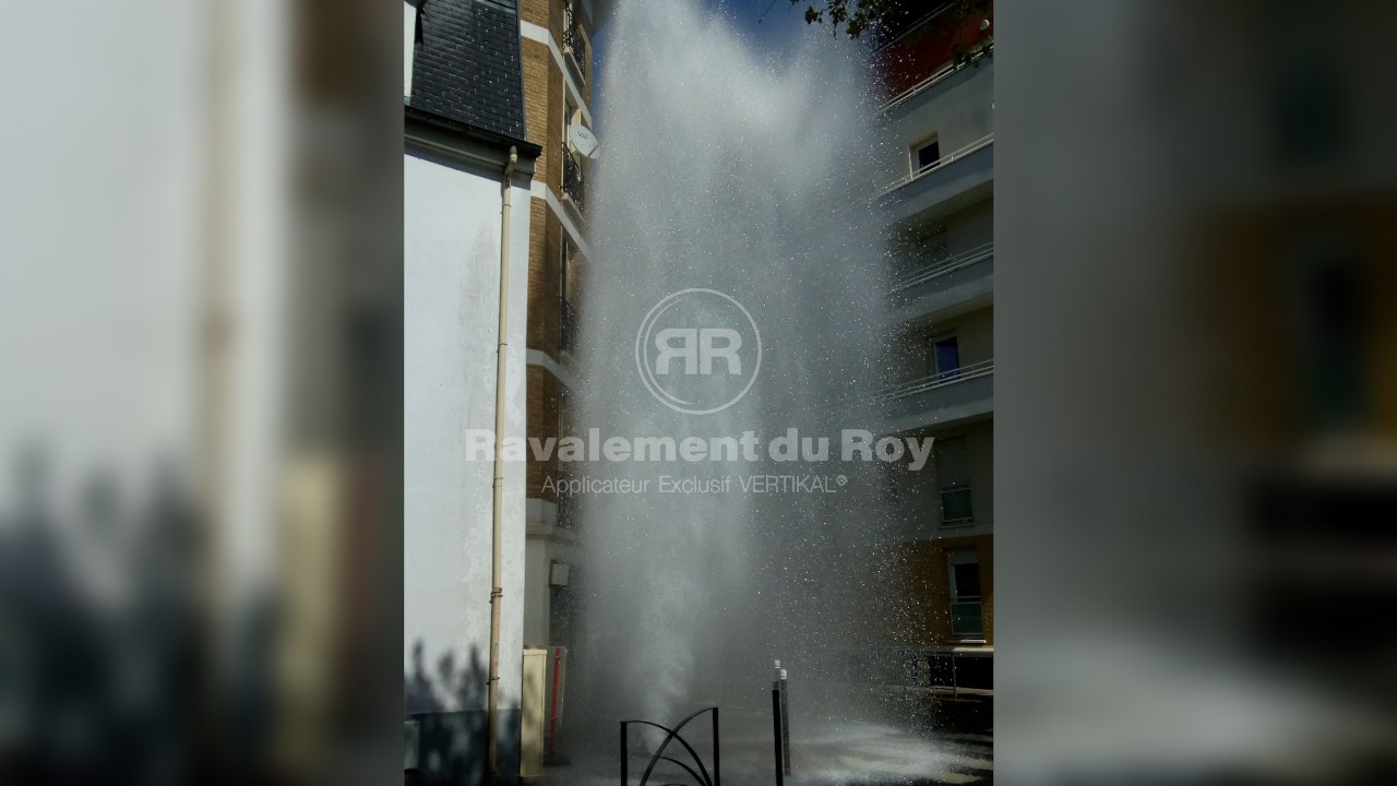 - Piochage 100 % des murs car façades gorgées d’eau suite vandalisme (Street Pooling).