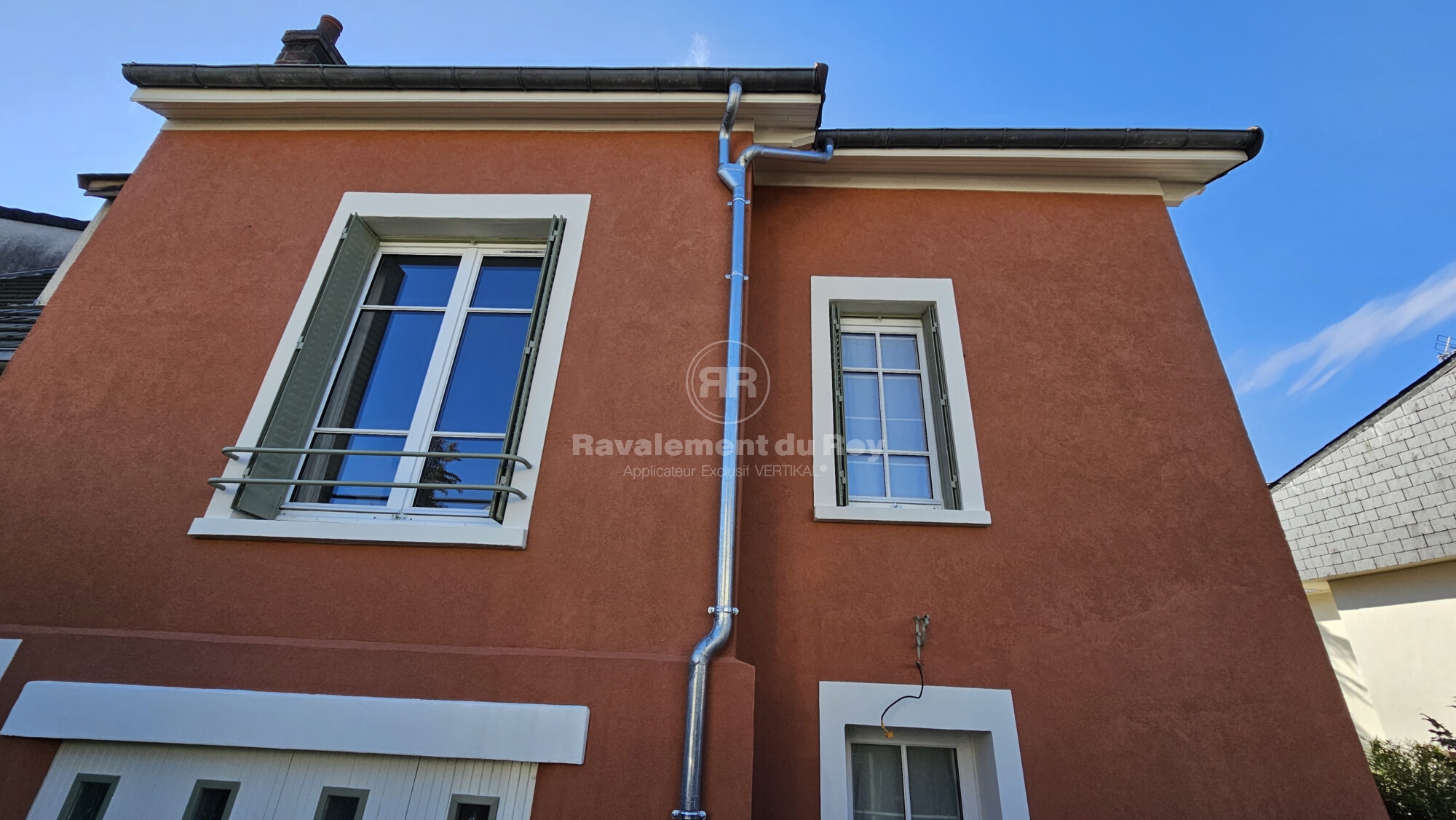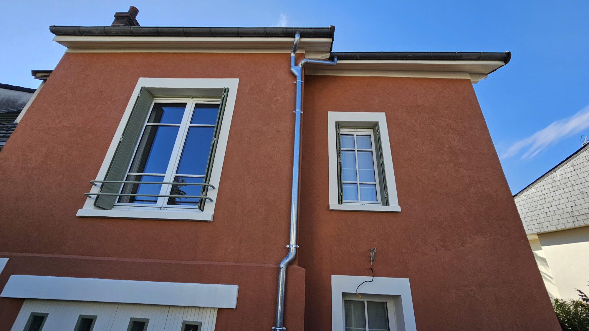 Les appuis de fenêtres ont reçu VERTIKAL HP Blanc Cassé, assurant protection, luminosité et entretien facilité. Les ferronneries ont été protégées avec une peinture ARUB noir antirouille, tandis que les boiseries ont été traitées avec RECAWOOD PRIM blanc. De nouvelles descentes pluviales en zinc naturel ont complété l’ensemble pour une gestion durable des eaux.