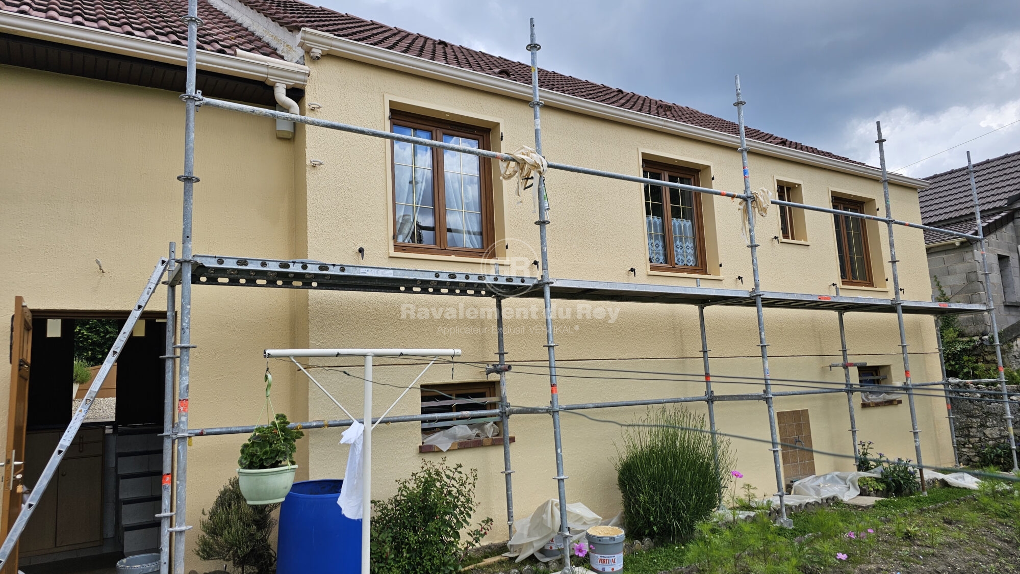 Sur ce chantier, la configuration de la maison et son environnement ont orienté l’organisation des travaux. Le masquage a été réalisé avec un soin particulier afin de protéger fenêtres, volets, plantations et abords immédiats. La présence d’animaux sur site a nécessité une vigilance accrue pour limiter toute nuisance.