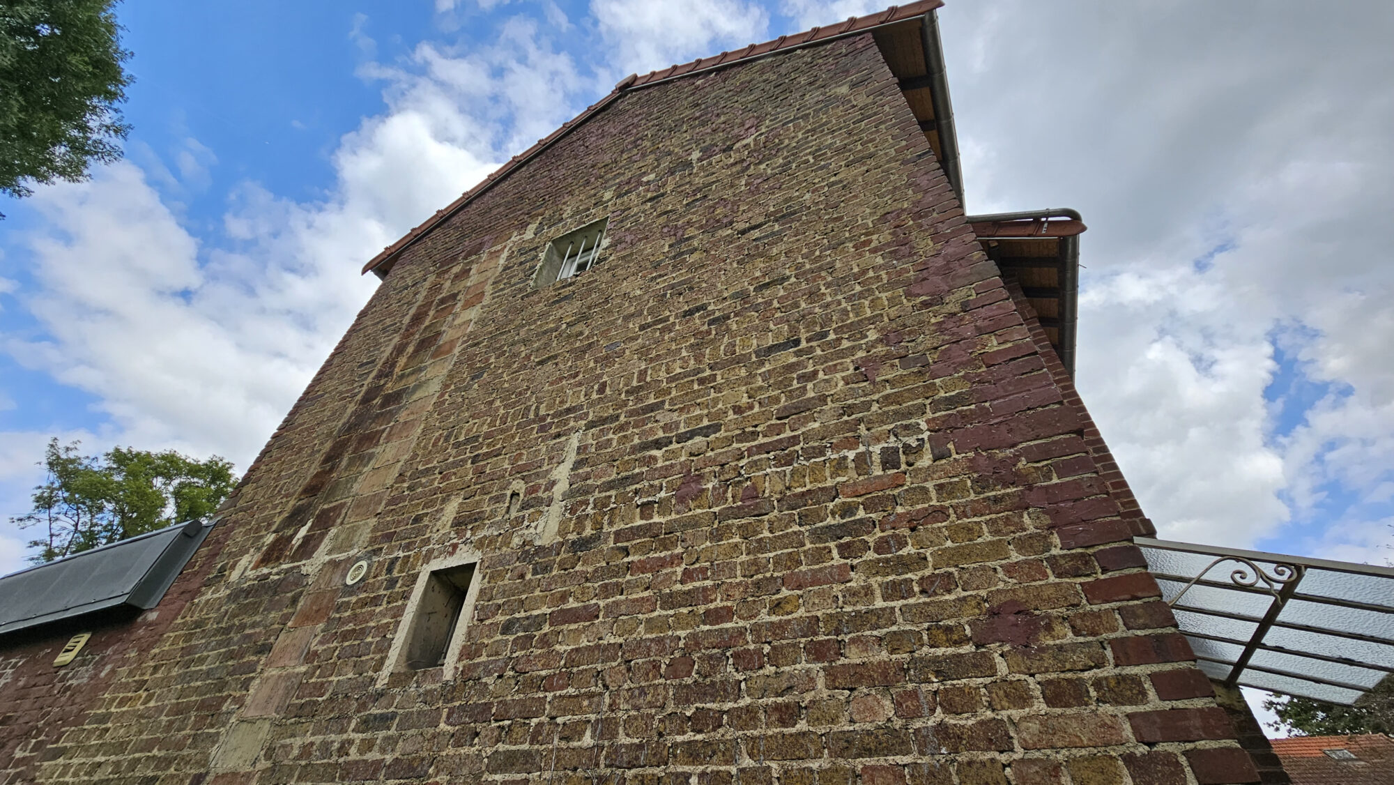 En sous-couche, VERTIKAL FORTIF 617 a été appliqué afin de consolider le support minéral, renforcer la cohésion des matériaux anciens et optimiser l’adhérence de la finition. Cette combinaison forme un système complet, protecteur et respirant, parfaitement adapté aux façades en briques et aux enduits à la chaux.