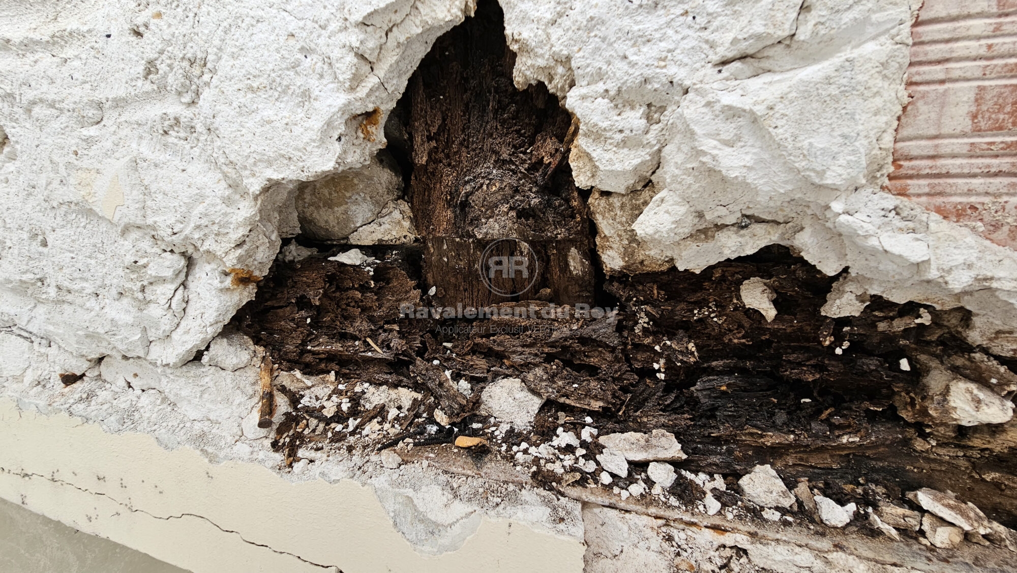 Le diagnostic approfondi réalisé par Ravalement du Roy a révélé la présence de pans de bois dissimulés sous une maçonnerie ancienne à base de plâtre et de chaux. Ces éléments structurels, soumis à une humidité importante, présentaient des dégradations hétérogènes selon les zones. Un piochage intégral de la façade a été réalisé afin de mettre à nu les supports, condition indispensable pour évaluer précisément l’état du bâti et hiérarchiser les interventions.