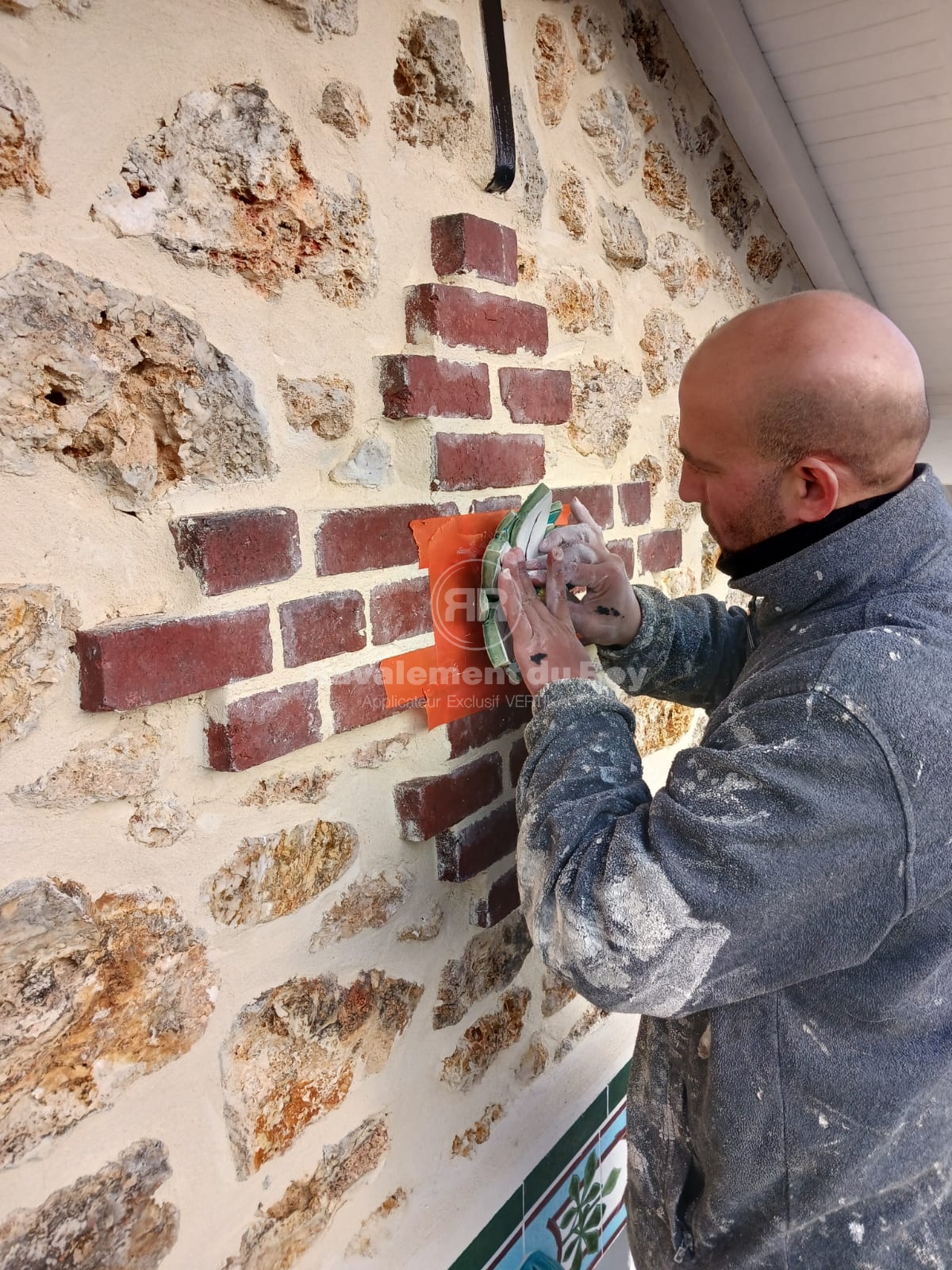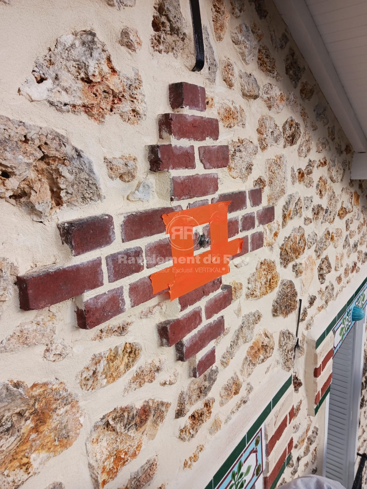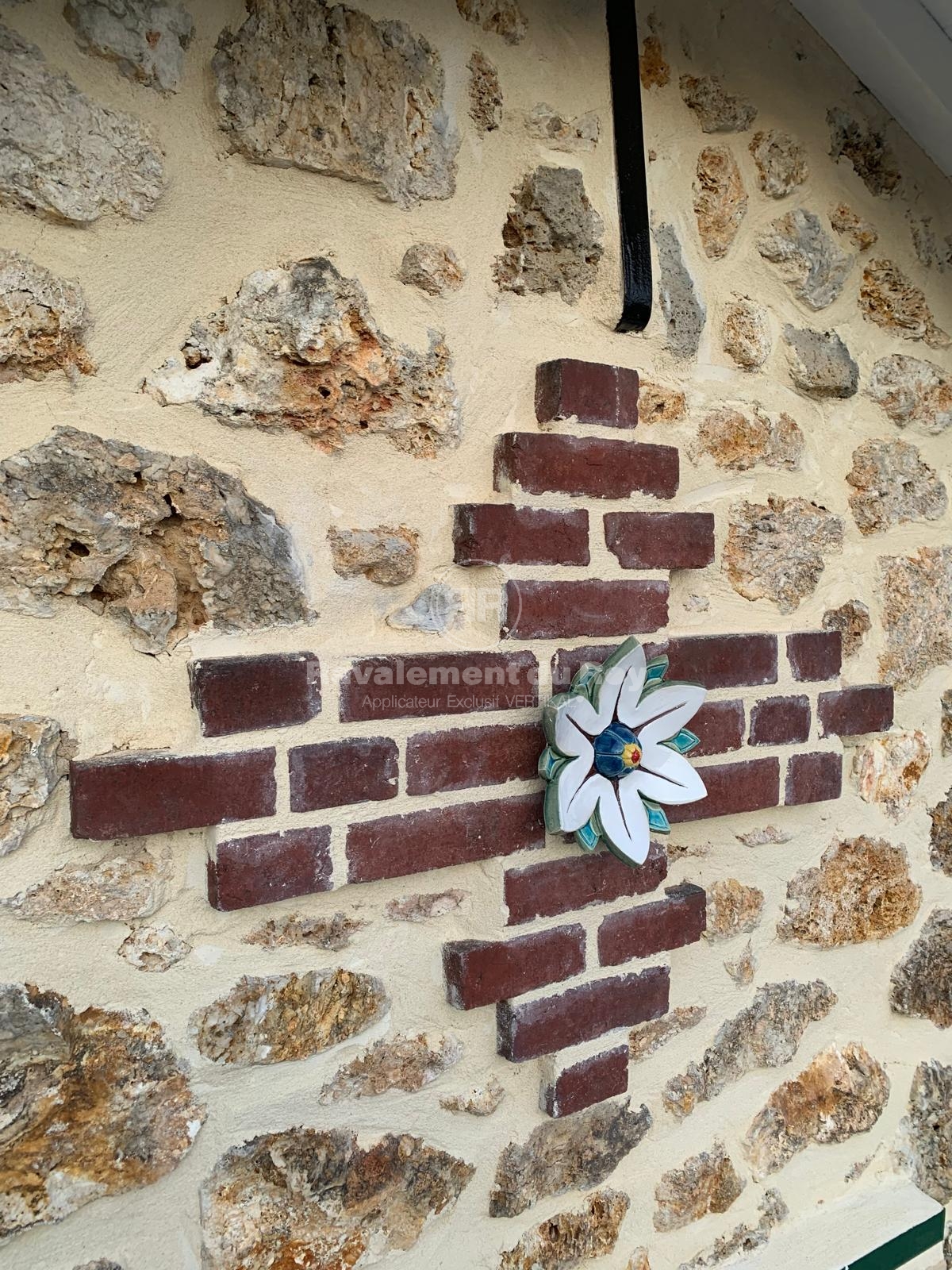 Sur la meulière et les briques de parement, un traitement VERTIKAL HYDROFUGE a été appliqué. Ce produit incolore pénètre en profondeur dans le matériau et empêche durablement l’humidité et les salissures de s’infiltrer. Il préserve l’aspect naturel de la pierre et des briques tout en renforçant leur résistance aux agressions climatiques. L’application en pulvérisation jusqu’au refus garantit une imprégnation complète et une efficacité maximale.