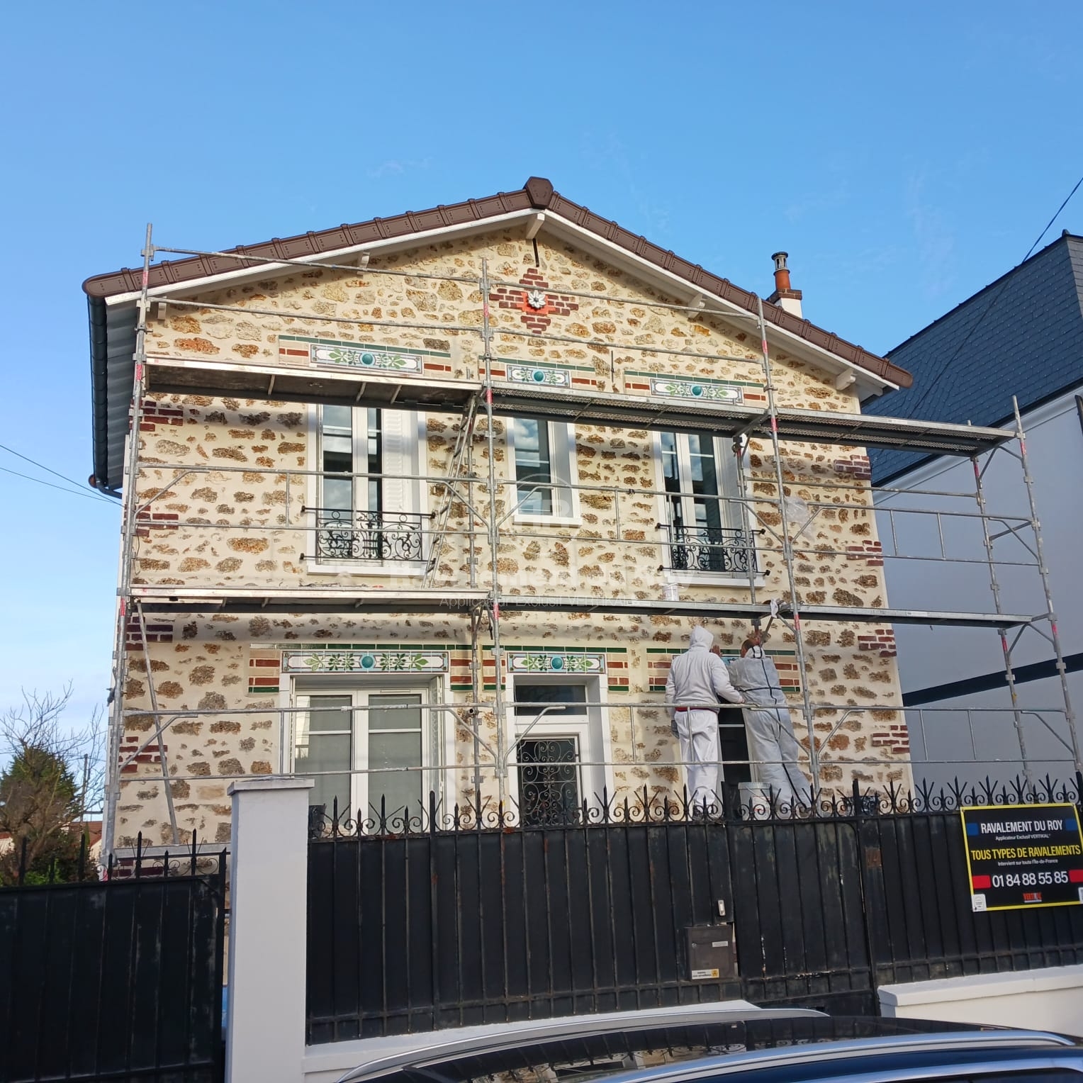 Rénovation d’une façade en meulière avec frises émaillées à Bourg-la-Reine (92340)