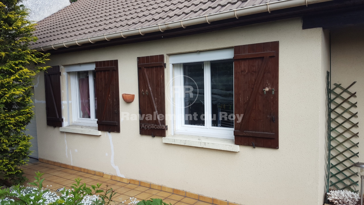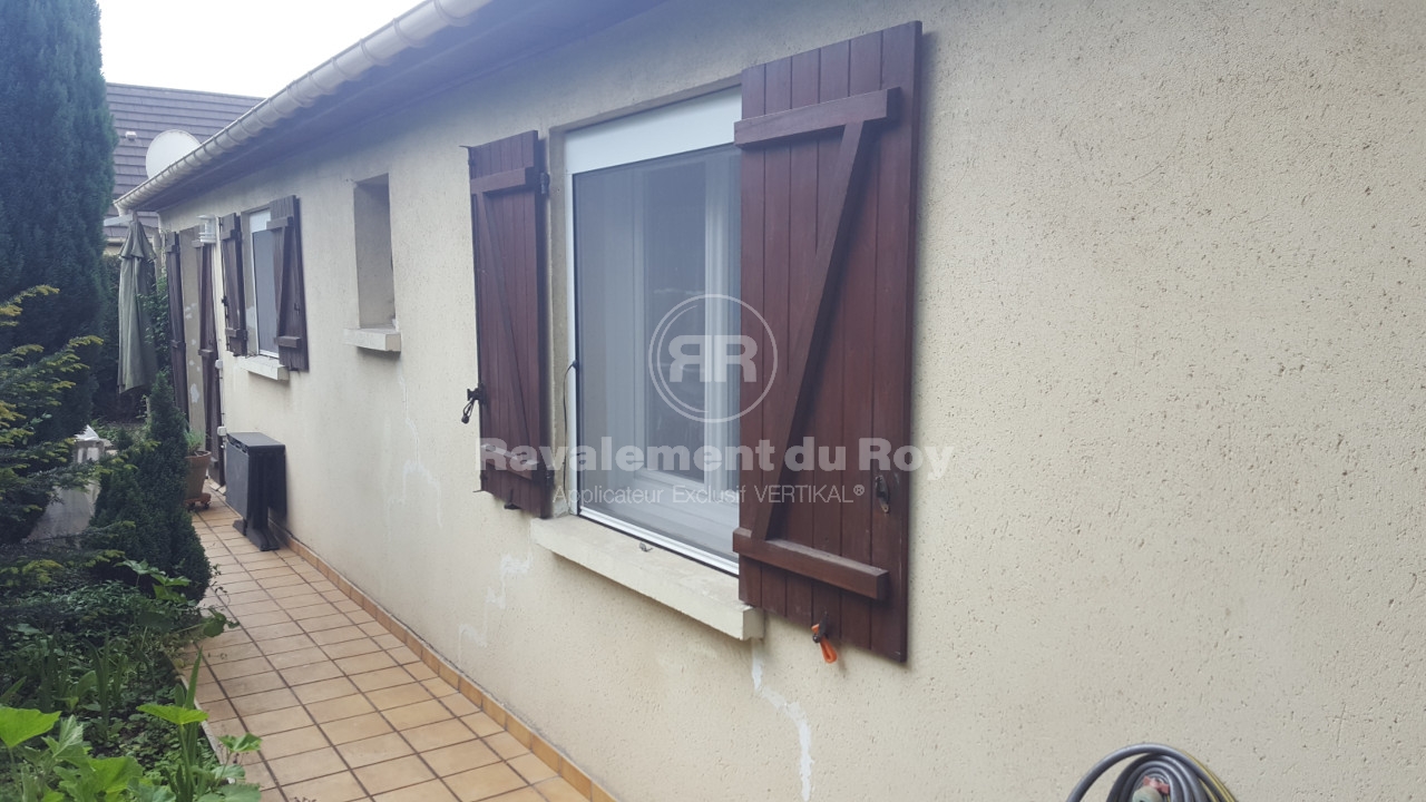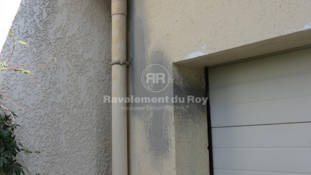 Après le respect d’un temps de séchage adéquat, nous avons fait le ravalement de la maison par la mise en œuvre d’un revêtement épais structuré très riche en résine pour la souplesse.