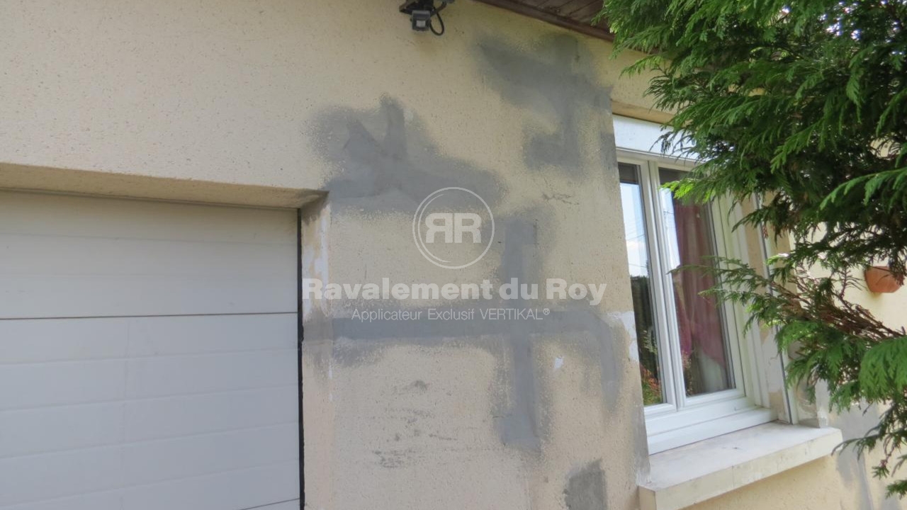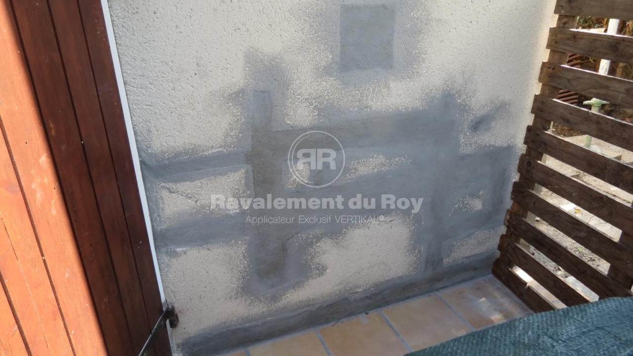 Cette maison des années 80, en parpaings, avait des crevasses importantes en escalier qui suivaient la maçonnerie des parpaings. Nous avons donc suivi le process suivant :