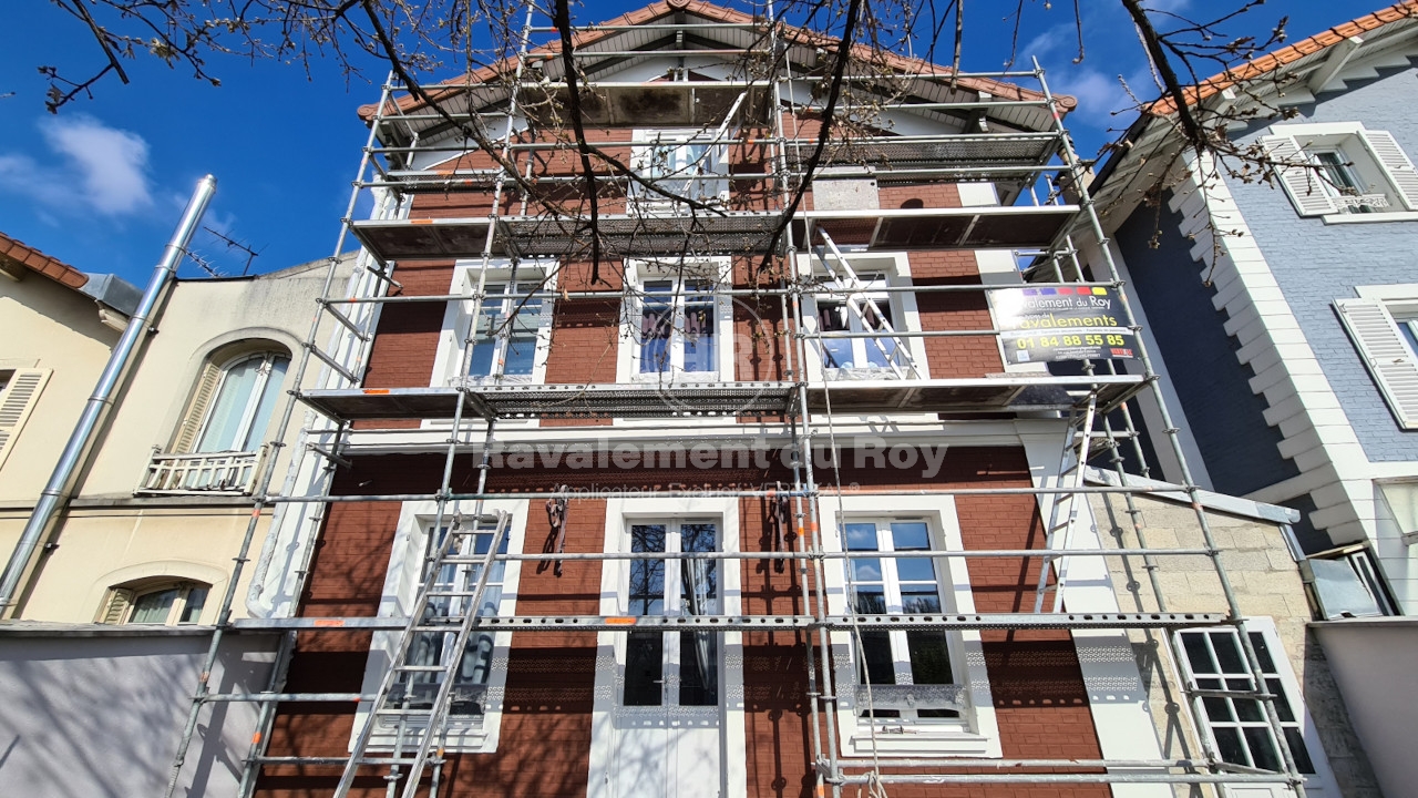 Le chantier de ravalement de façade réalisé par Ravalement du Roy dans la ville de Courbevoie a été une expérience unique en son genre. Cette maison en briques et aux modénatures maçonnées avait beaucoup vieilli depuis 50 ans, date de la dernière rénovation de façades. Le revêtement extérieur était fariné et les enduits de façades abimés par endroits. Les propriétaires de la maison voulaient redonner un coup de jeune à la couleur de façade en la repeignant en rouge, mais avaient des doutes quant à la pérennité de leur projet à long terme. Nous sommes alors intervenus pour offrir une solution personnalisée à leurs besoins.